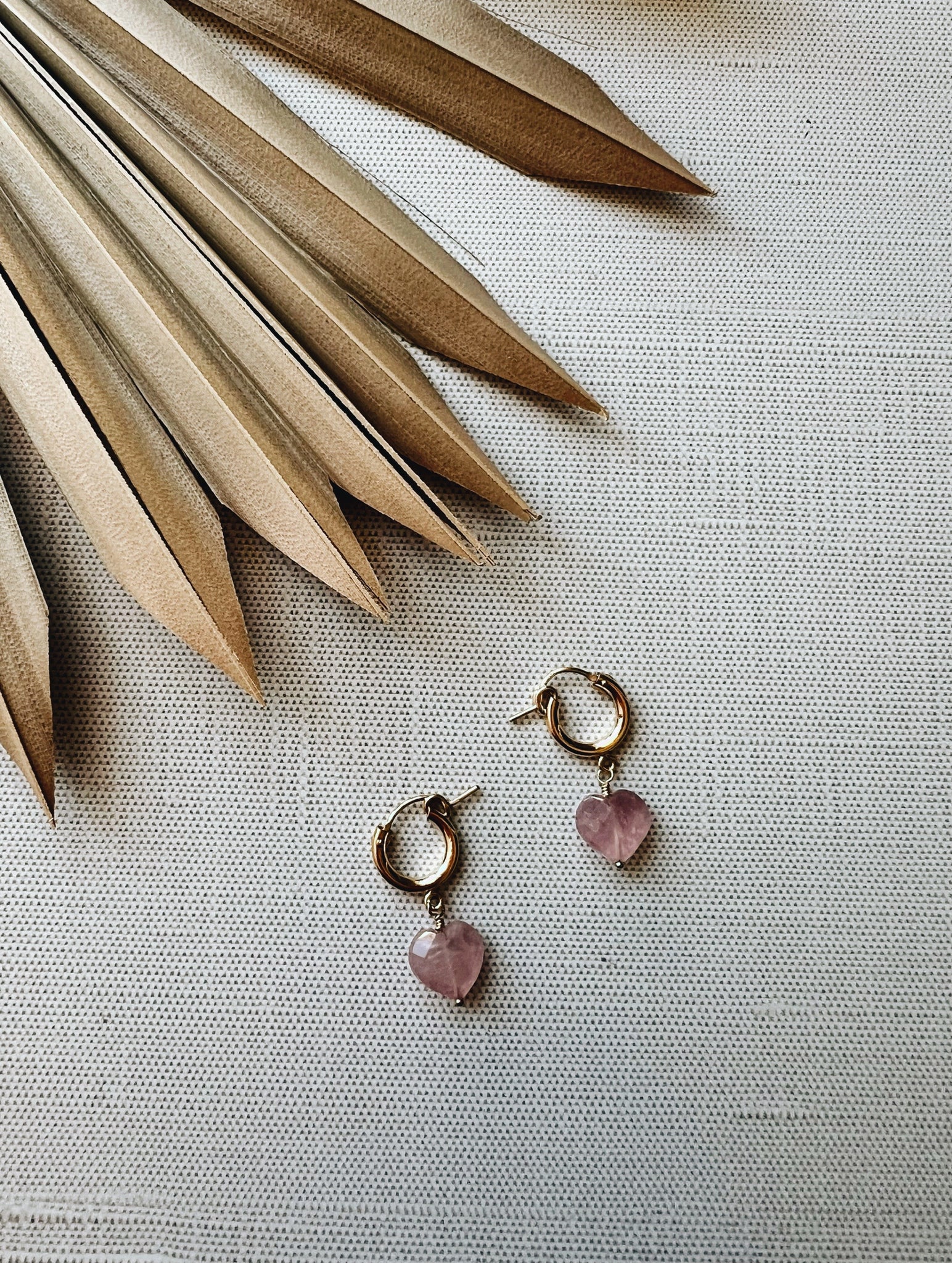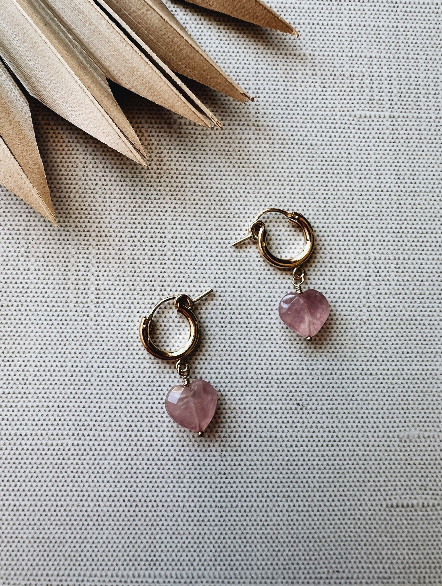 The Heart Eyes hoop earrings feature your choice of a 12mm 14k gold fill or .925 sterling silver huggie hoop adorned with a faceted rose quartz heart bead. These earrings are the perfect symbol of adoration and love for a V-Day gift but can still be worn year round.